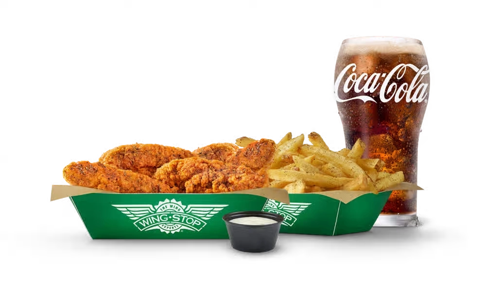 Experience Wingstop’s newest addition with their Crispy Tender Combos menu, featuring perfectly seasoned and hand-breaded chicken tenders paired with your choice of sides and drinks. Additionally, these value-packed combos offer the same bold flavors you love from Wingstop in a convenient meal format. Furthermore, each tender is made from premium chicken breast, seasoned with signature spices, and served with your favorite Wingstop sauce or dry seasoning for the ultimate flavor experience.